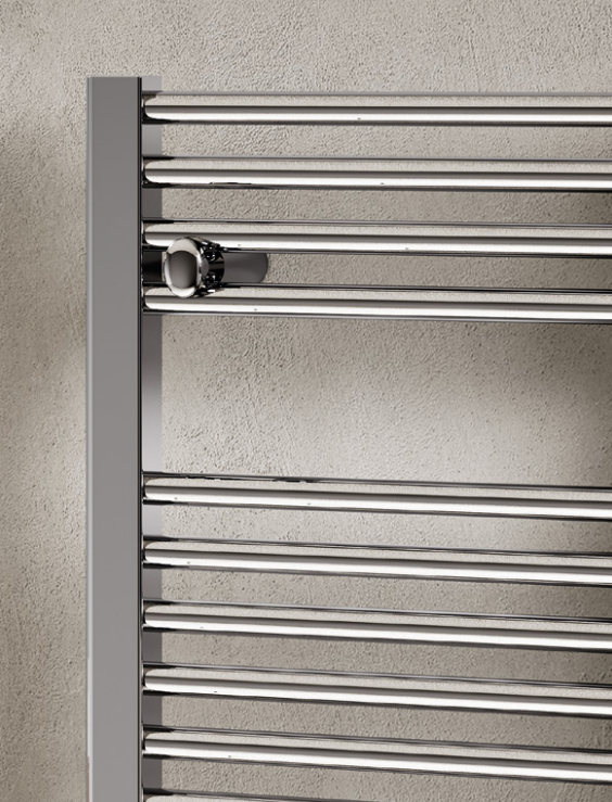 Тепер про те, як круглі трубки Ares від Irsap в дії поєднують стиль з повсякденною зручністю. Трубки 23 мм і напівовальні колектори — це не просто форма, а практичний дизайн: рушники чіпляються легко, сохнуть швидко, а проміжки дозволяють розвісити кілька речей без мотлоху. Глибина всього 85 мм — для будь-яких стін, навіть вузьких. Висота від 818 мм для компактних просторів до 1720 мм для високих, ширина 380–750 мм — обирай під свою ванну, і Ares від Irsap стане її тихим героєм. Уявімо білий варіант у класичній ванній або хром у сучасній — він не домінує, а доповнює інтер'єр ідеально. Монтаж легкий: бічне чи центральне підключення, і все готово.