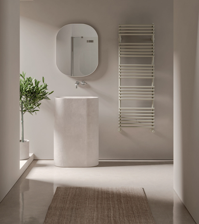 Тепер про те, як круглі трубки Kart від Irsap роблять сушіння рушників легким і швидким. Їх діаметр і відстань між ними — не випадковість: повітря циркулює вільно, тепло йде від кожної трубки, а рушники не торкаються один одного, сохнучи рівномірно. Глибина всього 90 мм — для стін, де не хочеш "випираючого" обладнання. Висота від 720 мм для компактних варіантів до 1750 мм для максимуму, ширина 500–750 мм — обирай під свою ванну, і Kart від Irsap стане її робочою конячкою. Уявімо білий варіант у класичній ванній або чорний у сучасній — він не кричить про себе, а тихо робить справу. Плюс, монтаж простий: бічне підключення, і все готово за день.