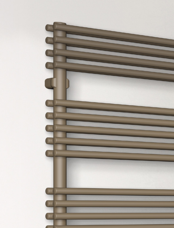 Тепер про те, як два ряди круглих трубок Kart2 від Irsap сушать усе й одразу без зусиль. Конструкція з трубками діаметром 23 мм у два ряди — це не просто дизайн, а розумний хід: тепло йде з подвійною інтенсивністю, повітря циркулює вільно, а проміжки дозволяють розвісити купу рушників, халатів чи навіть білизни. Глибина 120 мм — для стін, де потрібно більше потужності, але без зайвого "випирання". Висота від 720 мм для стандартних ванн до 1750 мм для високих стель, ширина 500–750 мм — обирай під свій простір, і Kart2 від Irsap стане його тепловим центром. Уявімо білий варіант у сучасній ванній або антрацит у лофті — він функціональний, але стильний. Монтаж простий: бічне підключення, і вперед до тепла.