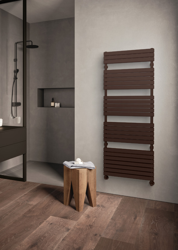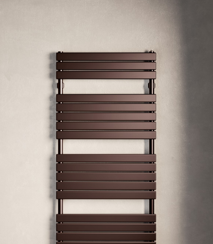 Главное в Xilo2 — это два ряда трубок 50 на 10 мм, которые создают чистый геометрический рисунок на стене. Не просто сушилка, а настоящий тепловой экран: больше поверхности — больше тепла и места для полотенец всей семьи. Высота от 792 до 1744 мм позволяет подобрать под любую стену, ширина 456–756 мм не давит на пространство, а глубина всего 78 мм делает ее почти плоской. Круглые коллекторы добавляют плавности, чтобы Xilo2 не выглядела слишком резко. А с более чем сорока цветами — от белого перламутра до глубокого черного или хрома — она становится акцентом интерьера. Представь: ванная в минимализме или лофте, и Xilo2 тихо дополняет все, будто специально для тебя придумана.